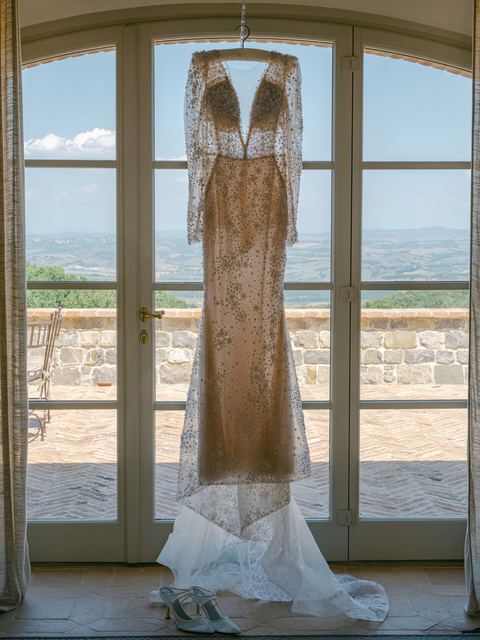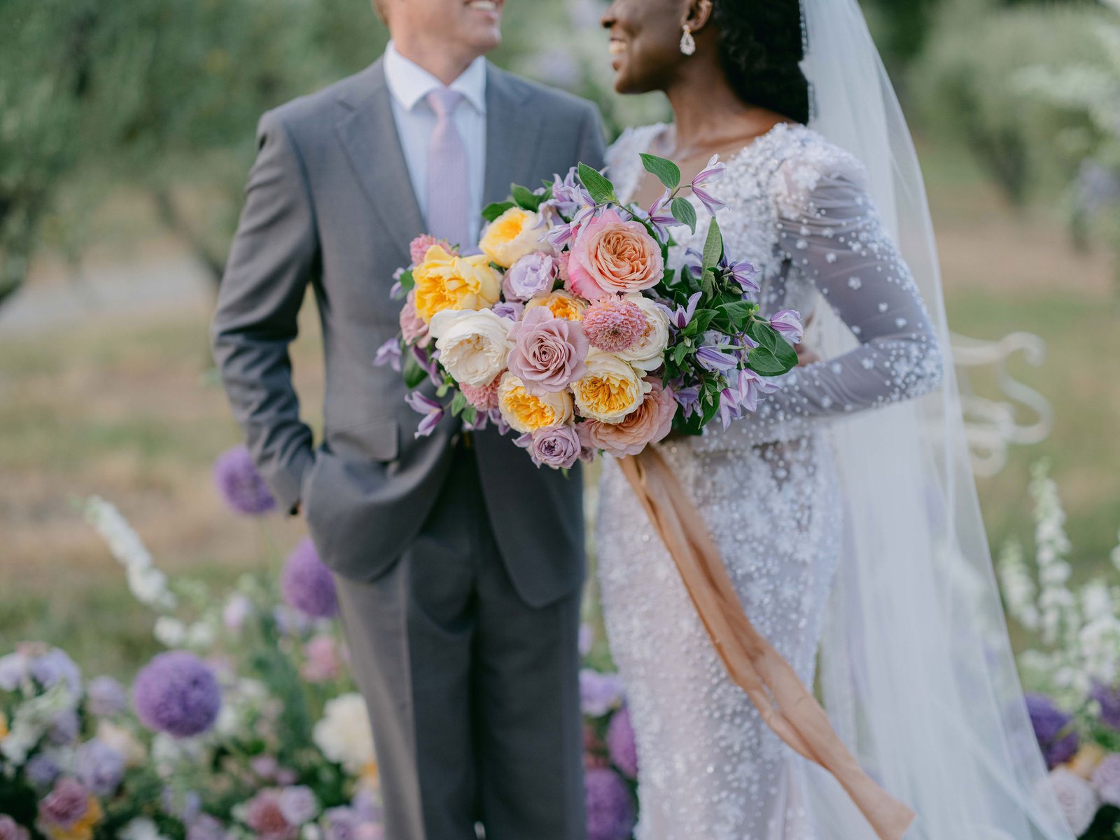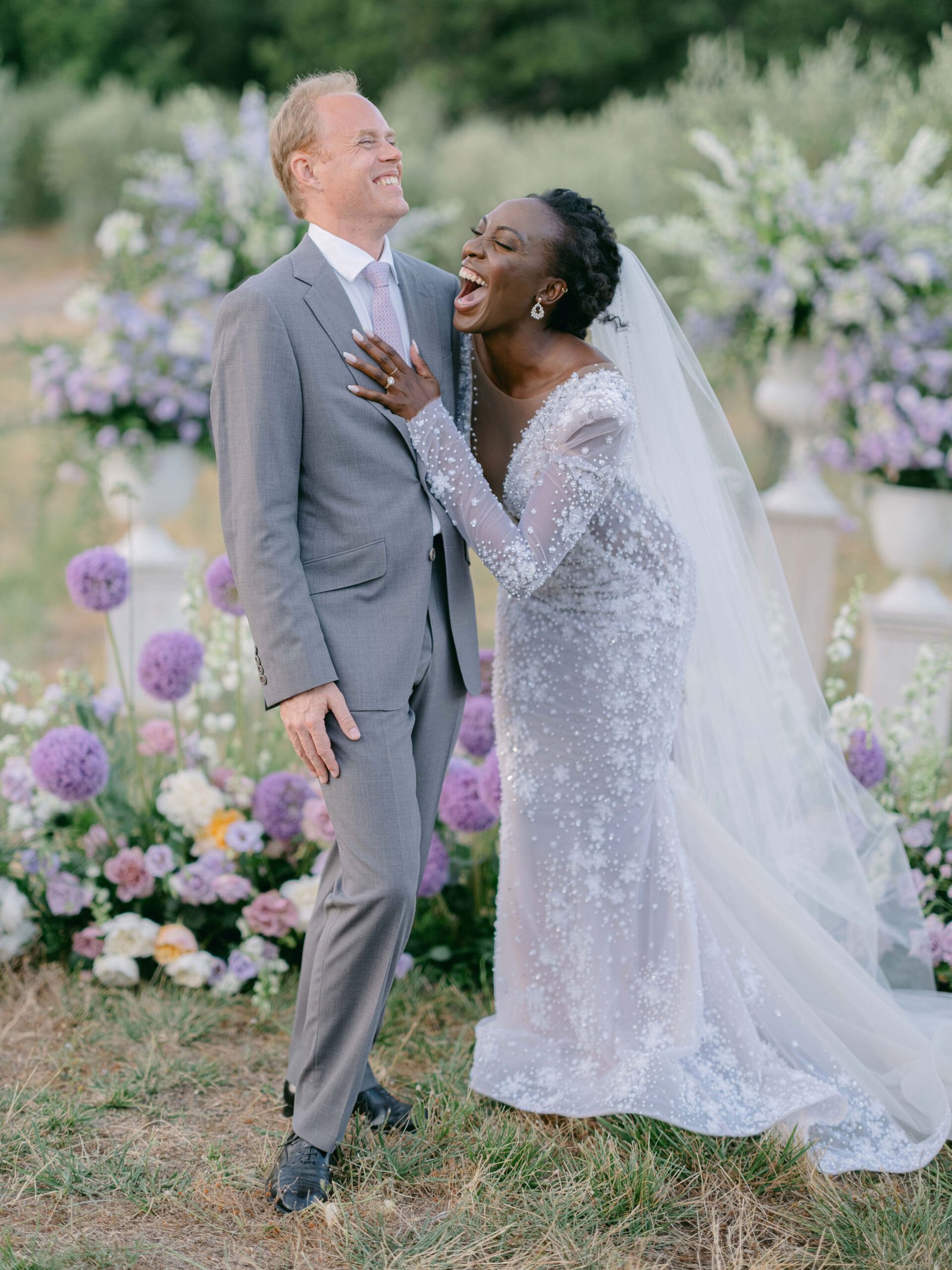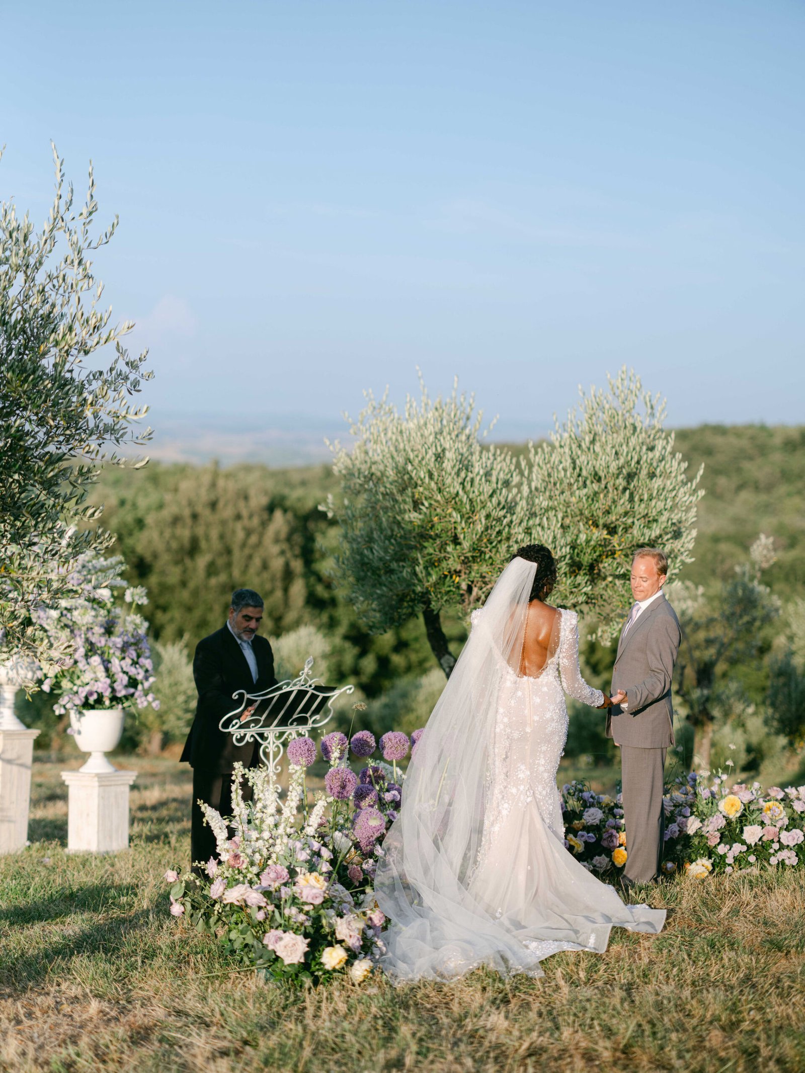 Set within the rolling hills of Montalcino, Castiglione del Bosco offered a celebration woven into the very fabric of Tuscany. Purple florals along olive grove aisles, chandeliers suspended beneath open skies, and golden hour light that only Italy can deliver.