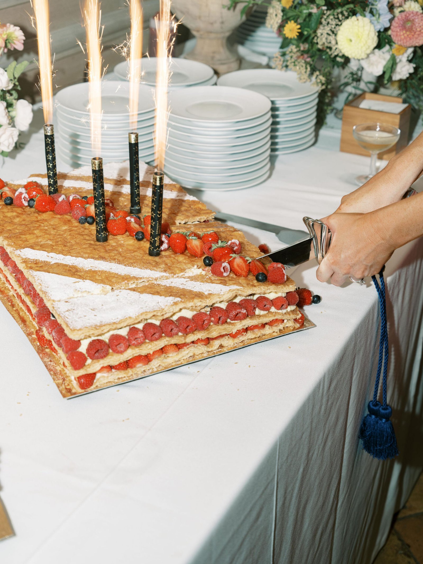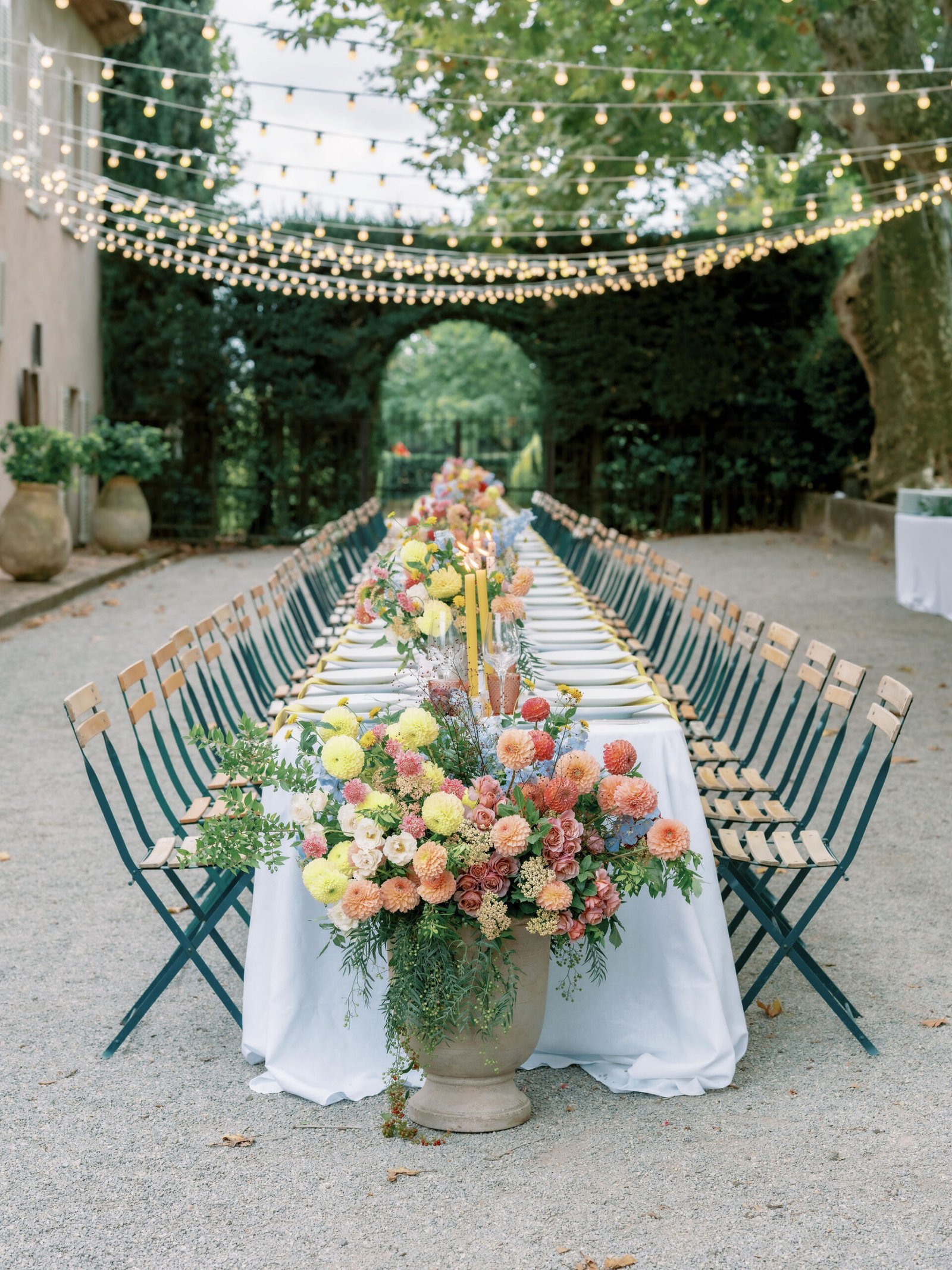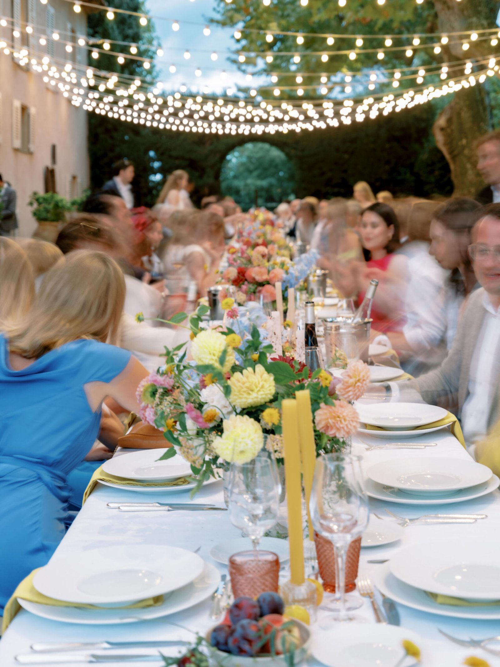 Château Sainte Roseline, a 12th-century abbey surrounded by vineyards in the heart of Provence. Stone arches framing the ceremony, fairy lights dancing above long dinner tables, and the soft glow of a first dance under the stars. Where history and love intertwine.